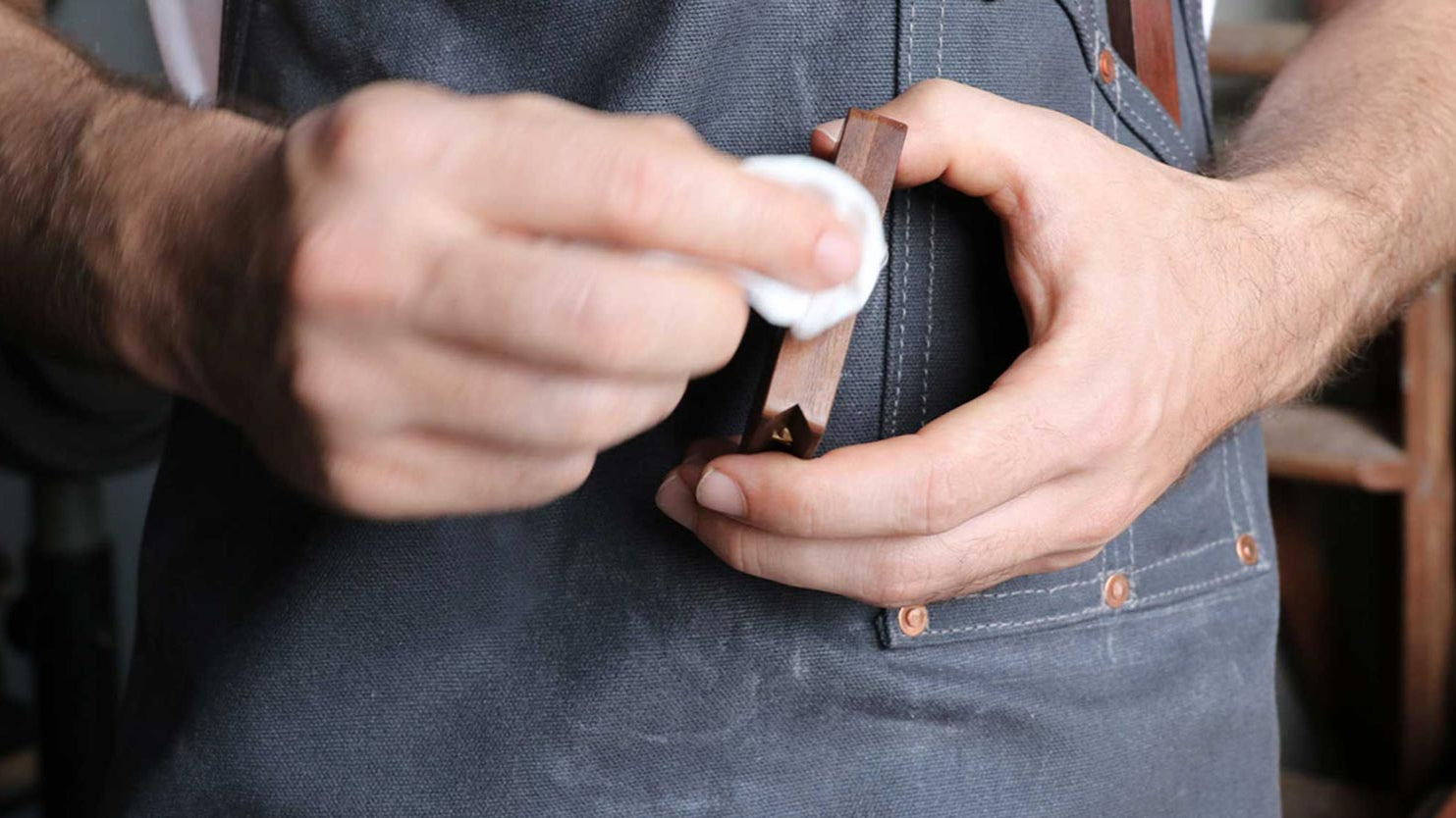 We take pride in the final process – finishing. Each box is hand sanded, coated with a mixture of bees wax and burnishing oil. The internal velvet parts are cut to size and then installed by hand.