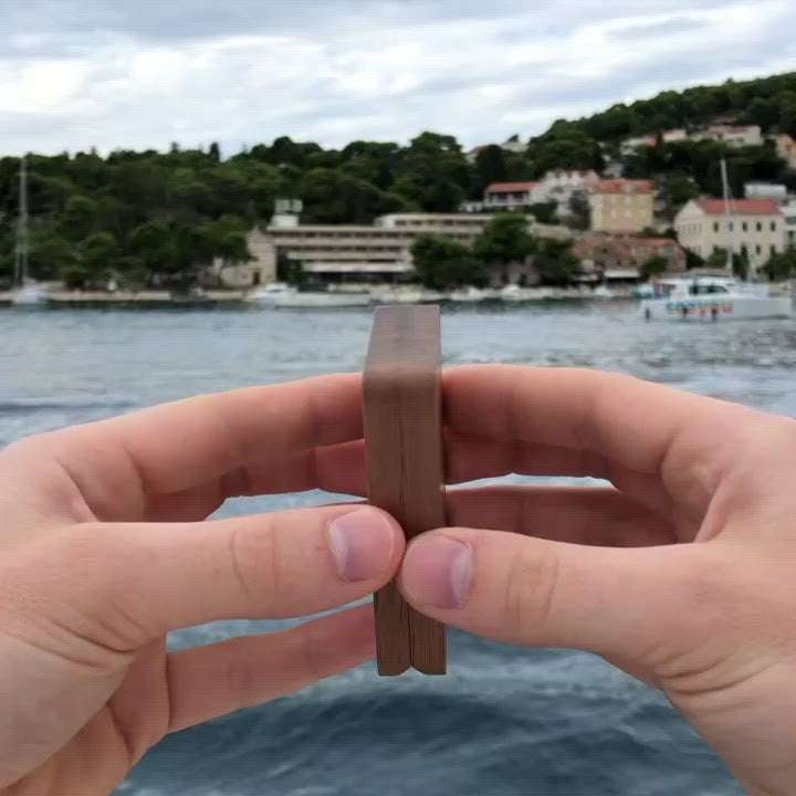Each engagement ring box starts as a solid piece of seasoned timber. We carefully select the finest American walnut for colour and grain. The timber is then cut (bookmatched) in our Sydney workshop to ensure the timber remains strong and stable.